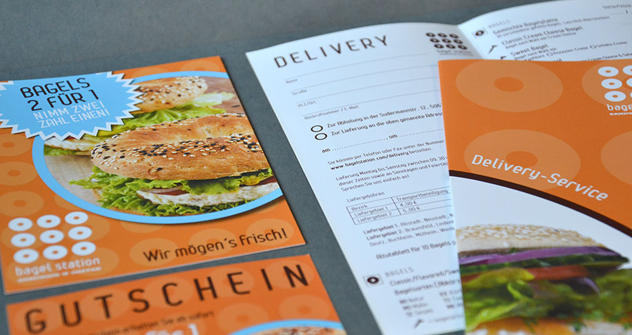 Gestaltung und Produktion der neuen Speisekarten, Delivery Flyer und Gutscheine.