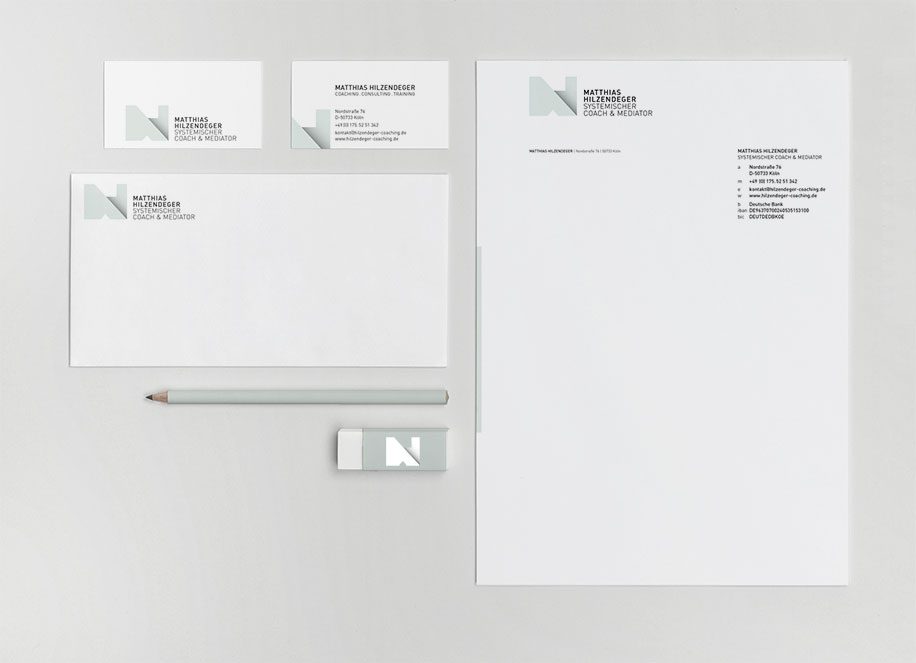 Modern, freundlich, offen, mit starken Ressourcen und individueller Führung. Martin Magiera hat dem Start Up „Systemischer Coach & Mediator – Matthias Hilzendeger" ein neues Corporate Design gestaltet, dass den Perspektivwechsel simuliert. Matthias Hilzendeger sieht sich als Coach, Berater und Gesprächspartner bei allen Themen rund um die Karriere und bietet eine erfolgreiche Neuorientierung und authentische Führung.