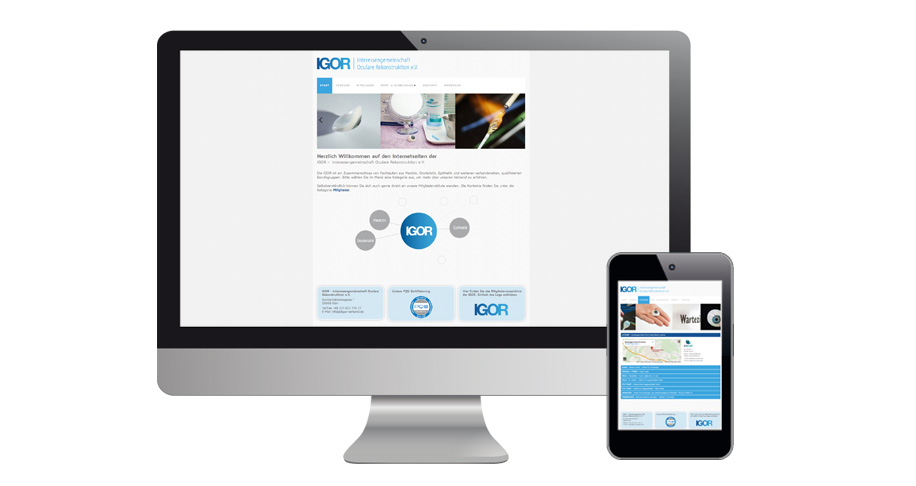 Das Gestaltungsbüro entwickelte neben der Wort- und Bildmarke die passende Geschäftsausstattung bestehend aus der ersten- und zweiten Briefbogenseite, Visitenkarten und Umschläge. Des Weiteren entstanden noch eine Einladung zur jährlichen Veranstaltung der IGOR und eine Internetseite.