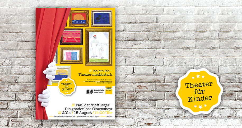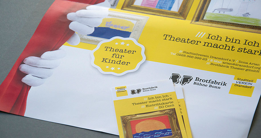 Der Stadtteilverein Dransdorf e.V. und die Brotfabrik Bühne Bonn haben das Theaterprojekt „Ich bin Ich – Theater macht stark" ins Leben gerufen. Kindern und deren Familien soll die Möglichkeit gegeben werden für einen Unkostenbeitrag von nur 50 Cent auch mal in den Genuss einer Theateraufführung zu kommen. Zu sehen gibt es ab dem 15. August 2014 u. a. das Stück „Paul der Tiefflieger – Die gnadenlose Clownshow" oder „Der Drache mit den roten Augen". Martin Magiera entwarf die Plakate und die passenden Eintrittskarten.