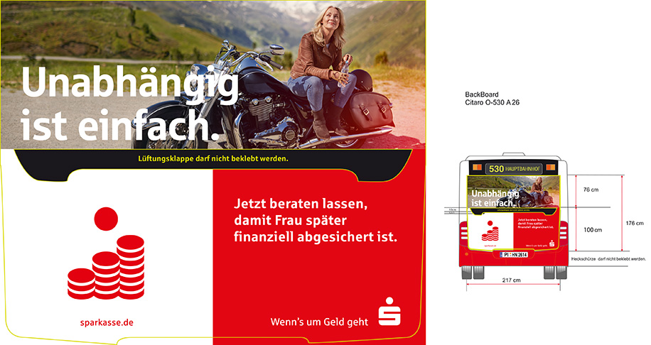 In Auftrag der Werbeagentur Kaiserkom GmbH aus Köln entstanden zu den Kampagnen „Unabhängig ist einfach." und „Über Geld sprechen ist einfach." passende Megalights Plakate und Buswerbung. Die Motive wurden in allen größeren Städten in NRW geschaltet.