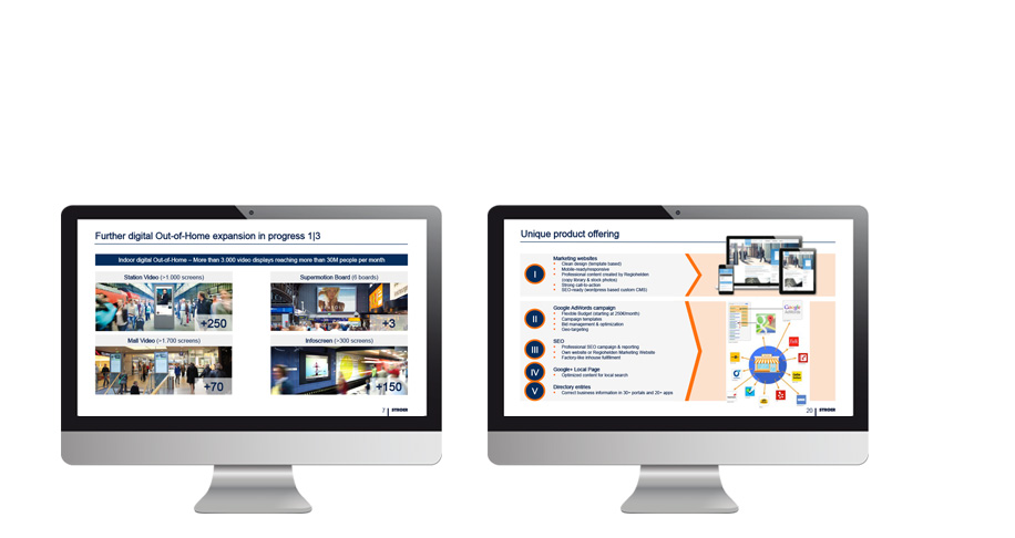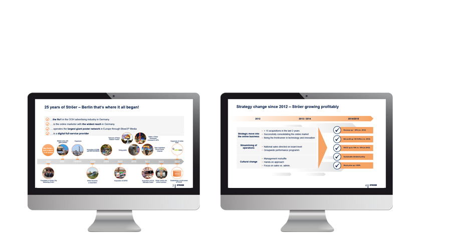 Konzeption, Layout, Entwicklung und Erstellung von Illustrationen und Unternehmenspräsentationen für den Bereich Investor Relations