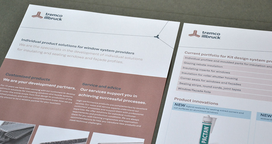 tremco illbruck ist führender Hersteller und Anbieter leistungsstarker Produkte zum Abdichten und Verkleben im Baugewerbe und der verarbeitenden Industrie. Das Unternehmen beschäftigt weltweit etwa 1.100 Mitarbeiter. Für die neue Produktreihe, wie auch die bestehende Produktrange gestaltete Martin Magiera Messeflyer in verschiedenen Sprachen.